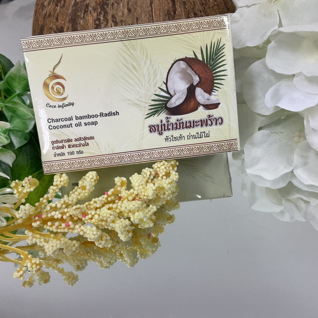 สบู่น้ำมันมะพร้าว หัวไชเท้า ถ่านไม้ไผ่